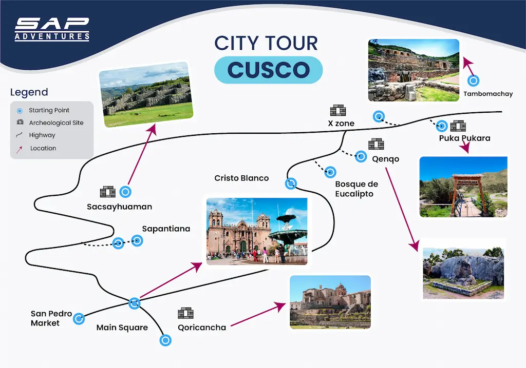 It is a half-day guided tour that explores the most important historical and archaeological sites in and around the city of Cusco, including Qoricancha, the Cathedral, Sacsayhuamán, Qenqo, Puca Pucara, and Tambomachay.